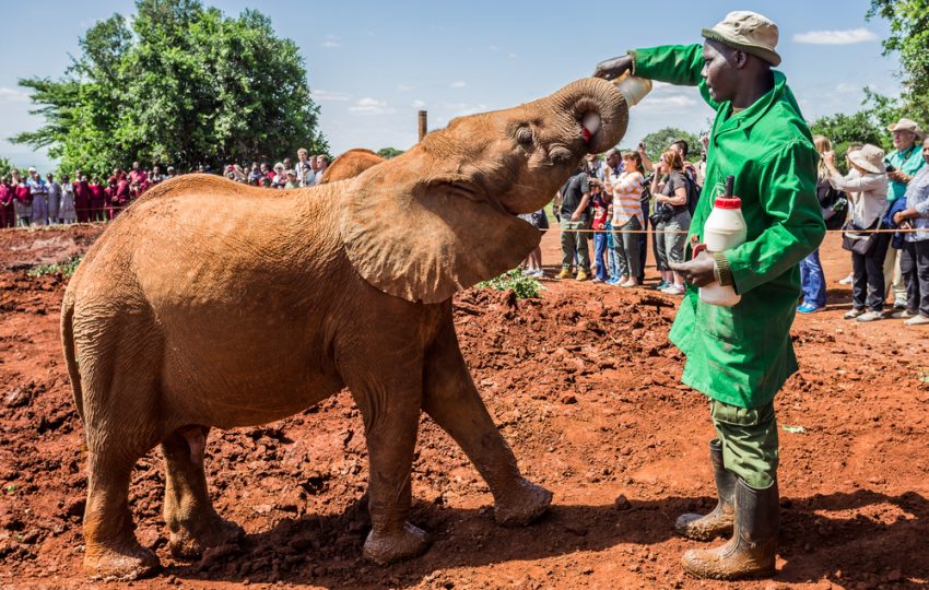 At around 10:30 AM, proceed to the David Sheldrick Elephant Orphanage. The visit begins at 11:00 AM, where orphaned elephants gather for their midday milk feeding, followed by playful mud and dust baths lasting about an hour. The caretakers introduce each elephant and share their rescue stories while explaining the challenges facing wildlife conservation. Entrance contributions support the rescue and rehabilitation of orphaned elephants.