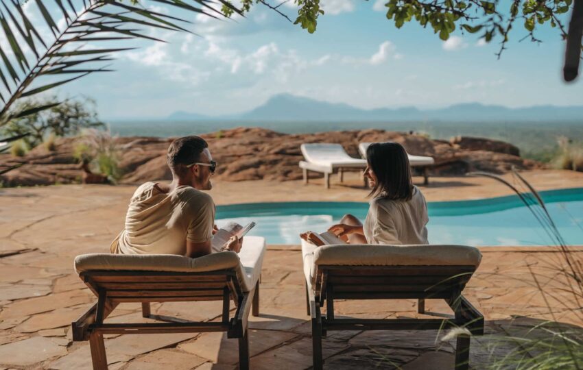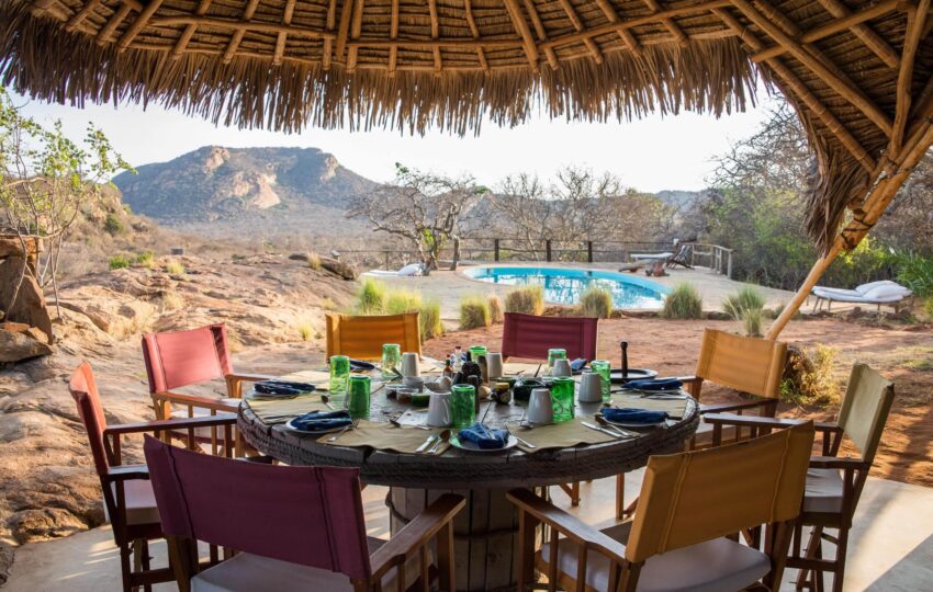 Blending rustic charm with modern comfort, the camp features six elegant tented suites and a spacious Rock Suite Villa, all thoughtfully positioned among dramatic rocky outcrops to maximize views of the Tsavo wilderness. Each suite includes a private veranda, en-suite bathroom, and eco-friendly design elements. An elevated pool deck carved into the hillside provides the perfect setting for sunset views and wildlife observation.