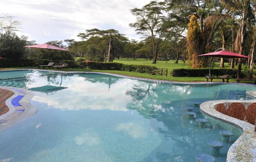 The lodge is approximately 125 kilometers from Nairobi, just over an hour’s drive via well-paved roads. It sits on the edge of Lake Naivasha, a freshwater lake whose size fluctuates depending on rainfall levels.