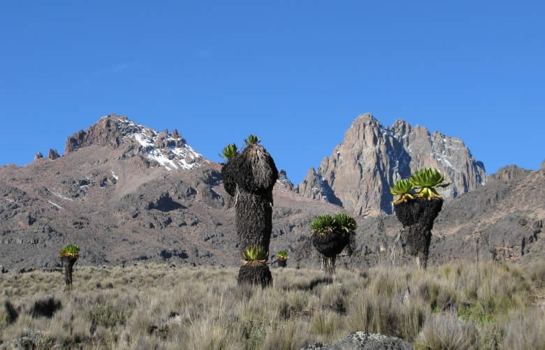 The combination of the Sirimon route starts from the west of Mount Kenya National Park passing through the driest side of the mountain. On this ascent, trekkers encounter giant trees, rocky terrain and the charming Mackinders Valley before descending via the Chogoria route.